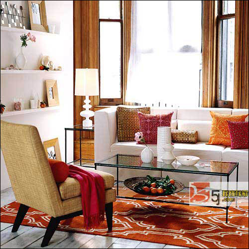 2.利用配色增加寬闊感。可以以白色為主要的裝飾色,墻、天花板、家具都用白色,稍加淡色的花紋。生活用品也選用淺色,最大限度地發(fā)揮淺色產(chǎn)生寬闊感的效果。再適當(dāng)采用些鮮明的綠色、黃色,可使寬闊感效果更好。