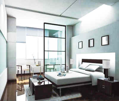 方案三:透明衛(wèi)浴。主臥室是私密空間,但若是將屋內(nèi)浴室用玻璃圍合,既擴(kuò)大了主臥室的空間感,又在私密的空間里營造出了欲說還休的氣氛。
