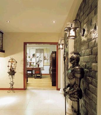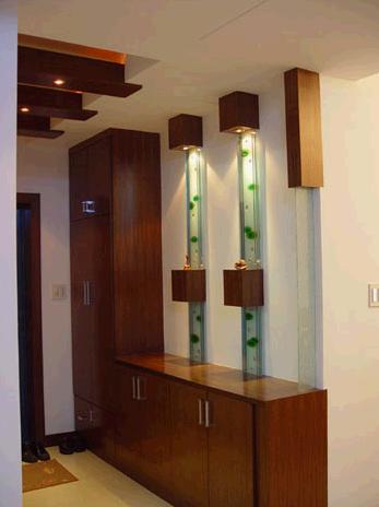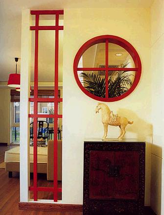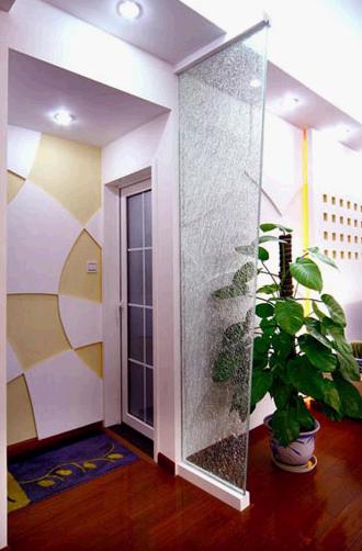 中國(guó)的傳統(tǒng)大宅院入門之處均設(shè)有大型玄關(guān),而現(xiàn)代都市的住宅普遍面積狹窄,若再設(shè)置傳統(tǒng)的大型玄關(guān),則明顯會(huì)感覺(jué)空間局促,難以騰挪。所以折衷的辦法是用玻璃屏風(fēng)來(lái)作間隔,這樣既可防止外氣從大門直沖入客廳,同時(shí)也可令狹窄的玄關(guān)不顯得太逼仄。