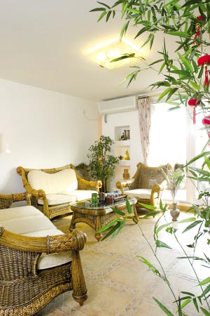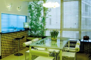 此外,花木布置還要考慮房間的光照條件,枝葉過密的花卉若放置不當,可能會給室內(nèi)造成大片陰影,所以一般高大的木本觀葉植物宜放在墻角、櫥柜邊或沙發(fā)后,使它們的上部伸出來,改變空間的形態(tài)和氣氛。