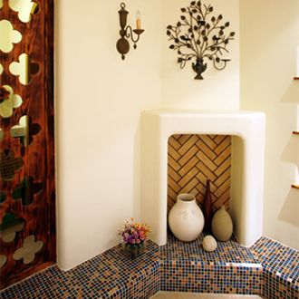 馬賽克可以說(shuō)是最小的裝修材料,造型上不再局限于方形與長(zhǎng)方形,正因如此,它們的組合可以千變?nèi)f化,基于設(shè)計(jì)上的創(chuàng)新,人們將不同色彩、不同規(guī)格、不同形狀的馬賽克加以組合,體現(xiàn)出個(gè)性的需求。比如在一個(gè)平面上,同色系深淺顏色的過(guò)度、不同顏色拼出的圖案、為瓷磚等其他裝飾材料做腰線進(jìn)行點(diǎn)綴等,都是表現(xiàn)馬賽克拼貼的成功應(yīng)用。對(duì)于房間曲面或轉(zhuǎn)角處,馬賽克更能發(fā)揮它身材小的特長(zhǎng),能夠把弧面包裹的平滑完整。
