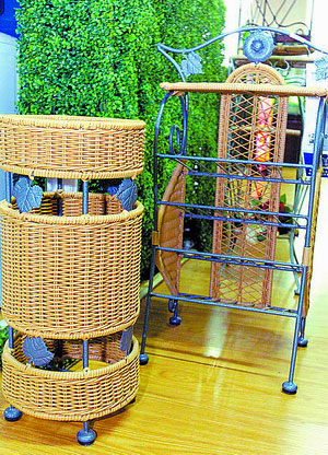 目前家裝市場(chǎng)上編制草制品所使用的材料,一般都是柳條、蘆葦和竹子,可以說(shuō)是綠色環(huán)保的佳品。雖然材料都是一些植物,但是大可不必?fù)?dān)心它的耐用性。由于工藝的改進(jìn),現(xiàn)在的草器和藤器除了強(qiáng)調(diào)裝飾性之外,實(shí)用性也大大加強(qiáng)了。像一件蘆葦編制的小書架,放二三十斤重的書完全不成問(wèn)題。一般的草具顏色都比較淺,大多是草的本色、淡黃或米色。這樣的色調(diào)自然給人一種清新爽潔的感覺(jué)。但它同時(shí)也非常易臟,一點(diǎn)浮土就會(huì)顯現(xiàn)無(wú)余。所以,要保持這種清新的感覺(jué),經(jīng)常擦拭草具是非常重要的。在清潔時(shí),切忌不要用濕布,只要干凈的干布把浮土撣干凈就可以了。