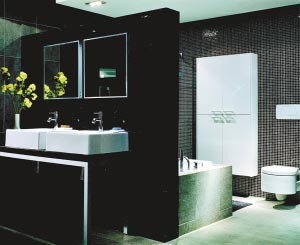 另外,在材料的使用上,各種新材料的加入,使衛(wèi)浴風(fēng)格更具多樣性,個(gè)性也更加鮮明。比如,金屬質(zhì)地的配件的加入,讓衛(wèi)生間增添了許多酷感和質(zhì)感。金屬的浴室把手、金屬的毛巾?xiàng)U、金屬的卷紙器、金屬的肥皂盒以及銅鋁復(fù)合的新型散熱器等等,這些細(xì)節(jié)的小小變化能讓衛(wèi)浴間整體變得時(shí)尚而有個(gè)性。另一方面,陶瓷制品也不再一統(tǒng)衛(wèi)浴空間的天下,石材、玻璃、木材等各種材料都成為陶瓷制品的替代產(chǎn)品。于是,玻璃面盆開(kāi)始受女性青睞;木制浴缸讓小資們心動(dòng);玻璃馬賽克更是在衛(wèi)生間里大行其道。