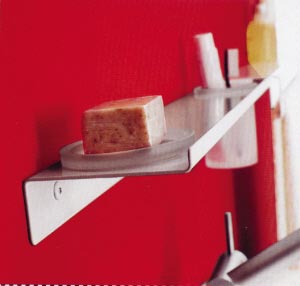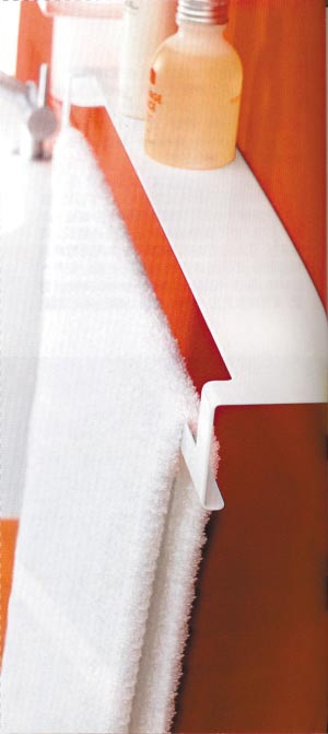面盆上方安裝置物擱板:無論是在面盆表面還是在浴室柜的臺面上,放過多的清潔衛(wèi)生用品都會顯得雜亂無章,而且容易碰倒,因此不妨在面盆上方貼墻的位置釘上10厘米寬的擱板,只要能放得下化妝品、刷子、牙缸等便可以了。