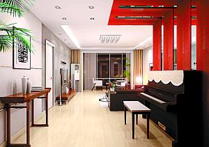 設計思路:這個休閑區(qū)為鋼琴區(qū),因為和客廳餐廳相連,所以想到要在這個地方做出明顯的分區(qū),同時要更符合鋼琴區(qū)的氣氛,于是從墻面到頂上選擇了跳躍性較強的四個紅色條形裝飾,更加準確地定位了這個空間的性質(zhì),看起來效果更強。