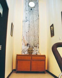 楊先生和很多喜歡藝術(shù)的人一樣對(duì)藝術(shù)擺件情有獨(dú)鐘。所不同的是,他沒(méi)有像其他人那樣將所有的擺件放在一個(gè)專(zhuān)門(mén)的架子上。而是根據(jù)家里的布局讓設(shè)計(jì)師設(shè)計(jì)了好多懸空的格子,把那些漂亮的瓶瓶罐罐擺在上面,既各得其所,又錯(cuò)落有致。而且許多看似不經(jīng)意的轉(zhuǎn)角處也都精心地?cái)[上了很漂亮的藝術(shù)品。