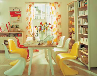 油漆是最有效改變家居氛圍的材料,一般人以為小空間面積較局促,墻壁一定要刷白才有空間擴(kuò)大的效果,其實不然,彩墻顏色若挑選得好,反而能做出深度感,拉大空間的視覺效果。另外小空間切勿用太多布飾、太多花色壁紙、桌巾,累贅又花錢。