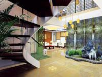 本案中,高達(dá)6米的水幕墻和簡約風(fēng)格的室內(nèi)設(shè)計巧妙地融合在一起,清泉一瀉而下,在餐桌的周圍靜靜地流淌,橘色的吊燈為素雅的房間平添了一種活力,這個水幕墻設(shè)計讓空間變得靈動而清新。