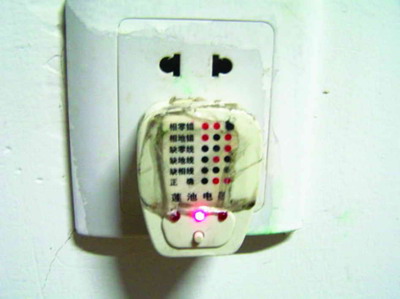 問題4:插座缺地線監(jiān)理解釋:根據(jù)國標(biāo)GB50327—2001電器安裝中的16.3.9規(guī)定,安裝電源插座時面向插座方向,應(yīng)該左側(cè)零線(N),右側(cè)接相線(L),上側(cè)接地線(PE)。圖中的三相電檢測儀上中間的紅燈亮起,這表示缺少地線。缺少地線會使冰箱、熱水器等電器壽命減短。