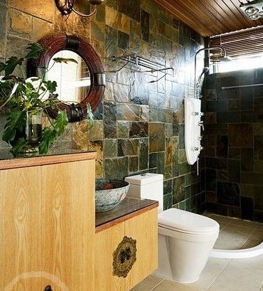 衛(wèi)生間是根據(jù)主人的喜好和承受能力選擇使用不同材質(zhì)、色彩的裝飾材料的,但是,別忘了衛(wèi)生間是個(gè)污染嚴(yán)重的地方,如果衛(wèi)生間在通風(fēng)和日照都很強(qiáng)的位置,就可以選擇黑白搭配的瓷磚來裝飾,黑白也能體現(xiàn)主人的個(gè)性和高雅的品味。反之,如衛(wèi)生間是封閉的,不能通風(fēng)也沒有日照,那就別選擇黑白或深色瓷磚和潔具,因?yàn)檫@樣不僅不能體現(xiàn)它的高雅,反而令人感覺壓抑,使地方更顯狹小。陰暗的衛(wèi)生間應(yīng)選擇色彩亮麗,簡潔清爽的瓷磚和潔具,這樣看起來既明亮清馨,又給人一種輕松的感覺,也便于做好衛(wèi)生間的保潔工作。