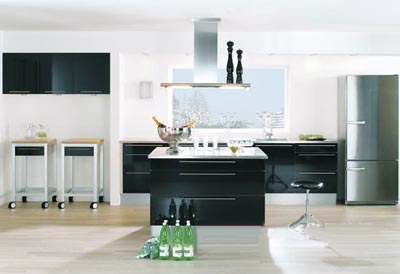 這款舒適的櫥柜安裝有黑色高光防火板門板。這個款型中,我們并沒有節(jié)省任何材料,然而價(jià)格卻更低。黑色和不銹鋼的組合,易顯經(jīng)久不衰的高雅。