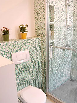 一般浴室的墻壁與地板是以貼白磁磚為主,但現(xiàn)在多元化的設計為一掃冷冰冰的印象,瓷磚的花樣顏色變得繽紛多采。如果你家的浴室是水泥墻,你可在墻面好好發(fā)揮你的創(chuàng)意喔!喜歡海洋,就漆成海藍、鑲上貝殼,做個海洋世界任你遨遊;喜歡森林,就造座森林吸取芬芳吧!衛(wèi)浴間周圍多用白色瓷磚,搭配上濃綠色觀葉植物,會覺顯眼悅目。雖然衛(wèi)浴間是濕氣和溫度甚高的地方,對植物生長不利,但可以選擇能耐陰暗植物,如羊齒類植物、抽葉藤、蓬萊蕉等,但要注意不要選有制類的植物,以防扎人。擺放的位置,要避免肥皂泡沫飛濺沾污。