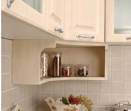 其一,充分利用空間。利用地柜與吊柜的空間的墻面,安裝擱架,可以放置消毒柜微波爐或安裝擱板、掛鉤、杯、調(diào)料瓶、鏟子、勺子等,這樣就避免了它們占據(jù)櫥柜臺(tái)面。