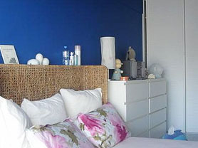 公寓住宅經(jīng)常受到街道的噪音、鄰居的嘈雜聲的影響,所以,選擇帶有冷色調(diào)圖案的壁紙裝飾墻壁,它既起到了裝飾作用,又給人一種睡眠的心理暗示,可謂一舉兩得。