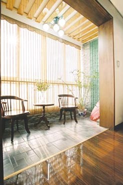 鋸齒狀的吸音棉吊頂以及具有紋理效果的墻飾,營造了一方寧靜的陽臺空間。資料圖片