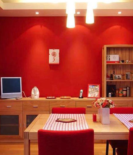 中國人認(rèn)為紅色是吉祥色,從古至今,新婚的喜房就都是滿眼紅彤彤的。紅色還具有熱情、奔放的含義,充滿燃燒的力量。但居室內(nèi)紅色過多會(huì)讓眼睛負(fù)擔(dān)過重,產(chǎn)生頭暈?zāi)垦5母杏X,即使是新婚,也不能長時(shí)間讓房間處于紅色的主調(diào)下。
