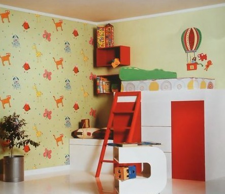 兒童房是最適合壁紙的地方,而它的壁紙也是最漂亮的。兒童房壁紙的首要要求就是環(huán)保,其次才是風(fēng)格。同時(shí)兒童房,因仆人的年齡差異是完全不同的。10歲以下的孩子的很多知識都是從直觀熟悉得來的,所以這部分孩子的房間可以貼一些卡通圖案的壁紙,這有助于刺激孩子的感知。孩子越小作用越大。而10歲到18歲的孩子,最討厭的就是被當(dāng)作小孩子,所以裝飾不能太幼稚?;泻⒆佑美渖{(diào),女孩子用暖色調(diào),而在腰線裝飾一些時(shí)髦的圖案。女孩子可以放一些Q版的時(shí)髦女孩圖案,男孩子則適合運(yùn)動(dòng)元素。