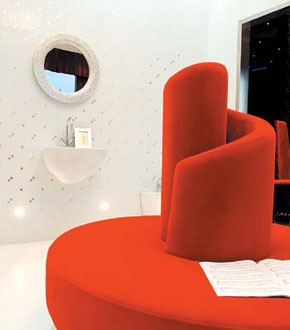 在一家建材超市里,一套白天鵝衛(wèi)浴套件也非常誘人。在《天鵝湖》中,可愛(ài)的奧杰塔公主被邪惡的魔王用魔法變成了白天鵝,唯有真正、永恒的愛(ài)情才能破解魔咒,讓奧杰塔公主恢復(fù)自由人身。在這套衛(wèi)浴配套中,天花的造型很輕易讓人聯(lián)想到白天鵝一雙扇動(dòng)飛舞起來(lái)的翅膀,在Bisazza白金馬賽克純白金銀鏡的相互映照下顯得純潔格外純粹。溫柔和諧的空間線(xiàn)條相互依戀著,配上懸掛在墻上體嬌小的唯寶潔具,整個(gè)空間讓人感覺(jué)無(wú)限的輕盈。而中間一張紅色的螺旋形大沙發(fā),讓人聯(lián)想到白天鵝那顆純潔神圣而又布滿(mǎn)著**的心。產(chǎn)品想要彰顯的表現(xiàn)人類(lèi)情感的純潔、美好、幸福的主旨也躍然其上。