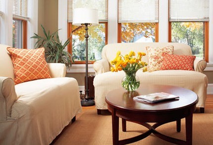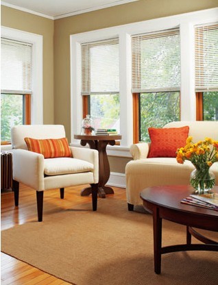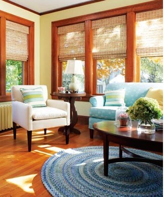 窗戶是采擷陽光最重要的元素,這個房間有很多窗戶,所以要好好控制光線。白色百葉窗顯得有點過時和太過死板 ,不太適合這個舒適的空間。