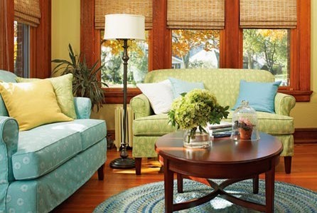 重新更換花朵圖案的沙發(fā)套時,如果你兩種圖案都喜歡,可以兩種都要。兩種顏色和圖案相近的沙發(fā)套可以和諧地擺放在一起,藍(lán)色和綠色使房間生動起來。