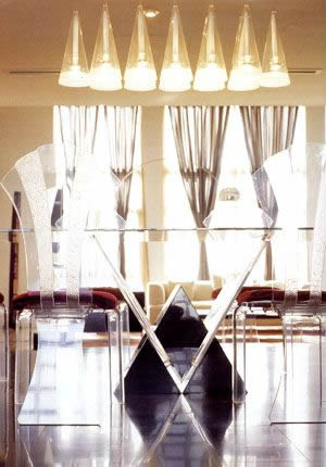 ?。病⒃O(shè)計時運(yùn)用傳統(tǒng)的室內(nèi)構(gòu)件通過新的手法加以組合,另一種是將傳統(tǒng)建筑構(gòu)件或室內(nèi)構(gòu)件與新的構(gòu)件混合、疊加,最終求得設(shè)計語言的雙重譯碼和含混的特點(diǎn);