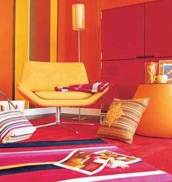 橙紅色:橙紅色令人想起秋天的果實,所以這種色彩有很濃的大自然氣息,恰當運用會使居室有一種充滿活力的感覺。在清涼的初春選一塊橙紅色的窗簾,沙發(fā)上選兩塊橙紅色的靠墊,都不失為頗有靈性的選擇。