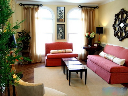 另外,強調(diào)一個accent color, 就是和房間主色調(diào)對比的顏色。比如,如果客廳是咖啡色的,比較凝重,你可以選擇一些淺綠色的裝飾品。這種搭配是非常重要的,要知道我們的眼睛對同樣色調(diào)的東西很容易起視覺疲勞,對比顏色的搭配,能起到畫龍點睛的作用。如果你的墻壁是淡黃色的,你的家具就可以用深色的,美國多數(shù)家具都是深色的。沙發(fā)可以選用白色,或者是米黃,然后配上色彩靚麗的枕心。Accent color 不是一定要用的,但是很多時候能有非常好的效果。