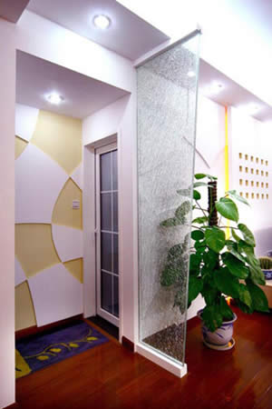 一、中國(guó)的傳統(tǒng)大宅院入門之處均設(shè)有大型玄關(guān),而現(xiàn)代都市的住宅普遍面積狹窄,若再設(shè)置傳統(tǒng)的大型玄關(guān),則明顯會(huì)感覺(jué)空間局促,難以騰挪。所以折衷的辦法是用玻璃屏風(fēng)來(lái)作間隔,這樣既可防止外氣從大門直沖入客廳,同時(shí)也可令狹窄的玄關(guān)不顯得太逼仄。