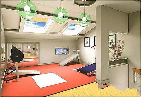 如果你的閣樓足夠?qū)挸?,不妨將這里的空間留給自己的身體做運動。臺球桌、跑步機、還有各種在健身房里才看得到的器械,統(tǒng)統(tǒng)搬回家。如果你向往大自然的清新氛圍,可以再為這片健身空間點綴些郁郁蔥蔥的植物。擁有了這樣一個美麗的私人“空中健身房”,整日忙于工作的你應(yīng)該不會再對健身偷懶了吧?