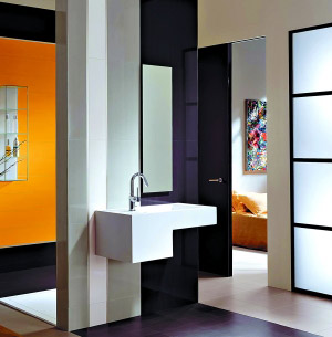 使用大面積鏡子,鏡子的安置可以讓本來很小的空間看上去很大,但是不要把自己限制在普通的櫥柜鏡上面,可以貼墻而立,也可置于房頂之上,不僅遮住樓上住戶的下水管道,也使狹小的空間富有變化、有層次感。大面積玻璃的反射,讓人在視覺上感到空間很大。