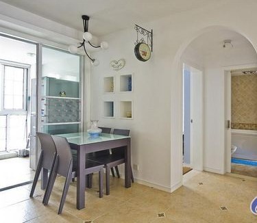廚房節(jié)省下來(lái)的空間自然就成了餐廳,用來(lái)擺放女主人喜愛(ài)的榆木大餐桌。