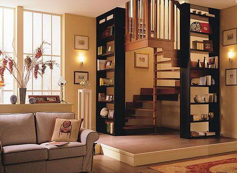 螺旋梯是折梯的變形。這種樓梯優(yōu)點(diǎn)是對空間的占用最小,且具有強(qiáng)烈的動(dòng)態(tài)美,由于不靠墻,圍欄不能借助墻體,需加上透空欄桿,這就更好地表現(xiàn)了樓梯的藝術(shù)之魅。缺點(diǎn)在于有局促感,由于每一段跨度較多,因此安全性較差。