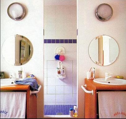 如果浴室沒(méi)有對(duì)外的窗戶,那堋可以在墻上掛面鏡子以形成一個(gè)想像空間。再者,鏡子能加速氣能的流動(dòng),對(duì)浴室而言,具有正面效果,因?yàn)樵∈易罴煽諝獠涣魍ā?