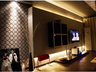 光源在立體空間里塑造耐人尋味的層次感,適當(dāng)?shù)卦黾右恍┹o助光源,尤其是日光燈類的光源,映射在天花板和墻上,能收到奇效,另外,還可用射燈打在淺色畫上,都可起到較好的效果。