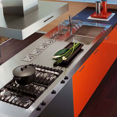 (二)不銹鋼臺(tái)面:不銹鋼是用于家庭廚柜及廚房工作臺(tái)的傳統(tǒng)原材料,不銹鋼材質(zhì)堅(jiān)固、易于清洗,實(shí)用性較好。5年前曾占有市場(chǎng)份額的主導(dǎo)地位,但其視覺較“硬”,給人 “冷冰冰”的感覺,且不易變化。在廚柜臺(tái)面的各轉(zhuǎn)角部位和各結(jié)合部缺乏合理的、有效的處理手段,不太適應(yīng)民用廚房管道交叉等特殊性。近幾年來,由于“歐美一體化”現(xiàn)代廚柜新概念的強(qiáng)烈沖擊,不銹鋼臺(tái)面不順應(yīng)廚柜美觀實(shí)用相結(jié)合的發(fā)展趨勢(shì),市場(chǎng)供求趨勢(shì)顯而易見。對(duì)于偏重于“實(shí)用”考慮的消費(fèi)者,選購不銹鋼臺(tái)面也未嘗不可,但是,最佳選擇是 “美觀實(shí)用相結(jié)合”的產(chǎn)品。