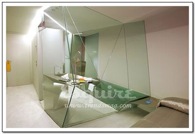 最另類的玻璃利用哲學(xué):一掃臥室在人們心中只是安靜的休息場(chǎng)所的形象,嘗試充分利用玻璃的反射效果來(lái)營(yíng)造變幻莫測(cè)的閣樓空間效果。最具偽裝效果的家具:你發(fā)現(xiàn)浴缸了嗎?仔細(xì)看看洗手池的后面。最大膽的顏色選擇:把床單搞得像調(diào)色板一樣的復(fù)雜很簡(jiǎn)單,但那叫惡俗而不是大膽,最大膽的顏色選擇莫過(guò)于這間屋子床上的亮銀色,這才叫真正的大膽。