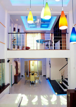 在低矮的住房中,如能運用裝飾布置技巧,利用人的錯覺和感覺,可使低矮住房也能顯得寬敞、明亮,減少人的壓抑感。