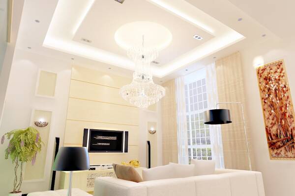 吊頂是室內(nèi)設(shè)計中經(jīng)常采用的一種手法,是房間中最大的未經(jīng)占用面積,人們的視線往往與它接觸的時間較多,因此吊頂?shù)男螤詈唾|(zhì)地的藝術(shù)處理很明顯地影響著空間效果。吊頂?shù)牟牧现饕械V棉板、紙面石膏板、木板、塑料、玻璃、金屬等幾種。