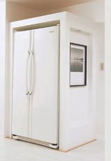 小面積公寓廚房一般都是按小尺寸的冰箱制定出空間。不妨給大冰箱制作一個(gè)外衣箱,側(cè)面可以適當(dāng)點(diǎn)綴一下,看起來整潔美觀。