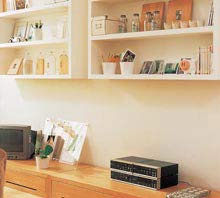 假如有大量的CD和書籍、錄像帶等物品,最好事先根據(jù)這些物品的具體外形和數(shù)量,來制定適當(dāng)?shù)目臻g規(guī)模。定做尺寸相當(dāng)?shù)臄R板或收納柜,可以避免空間的浪費(fèi)。而且,整理起來有條不紊,視覺上也整潔許多。