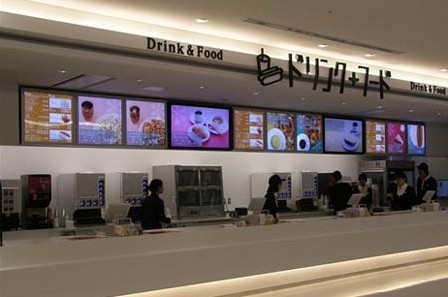 除了這塊大尺寸的液晶顯示屏,新宿Piccadilly內(nèi)還設(shè)置了10臺65吋、2臺52吋的夏普液晶,分別放置在售票處、檢票處、飲食區(qū)、樓層入口處等地。其他地區(qū)還放置了一些46吋及以下規(guī)格的中小型液晶,均用于公共信息提示服務(wù)。