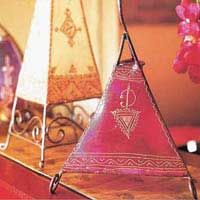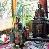 休閑角落 洋鐵臺(tái)燈 洋鐵臺(tái)燈,是代表摩洛哥風(fēng)格的又一種臺(tái)燈。鏤空、雕花,種種復(fù)雜的工藝用于洋鐵材料上,制作出來的是極具裝飾效果的別致臺(tái)燈,很有神秘感,可以放在陽臺(tái)或其他休閑角落。