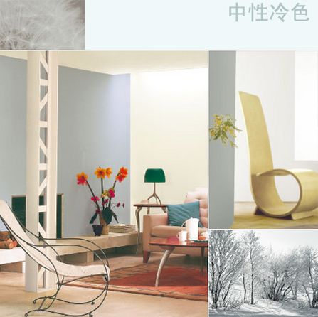 該組色彩集中體現(xiàn)在從白色到深黑色之間的各種柔和安靜的灰色之中——這些具有靈性的中性色彩,與其它色系中的各種顏色都可形成優(yōu)雅的對比。