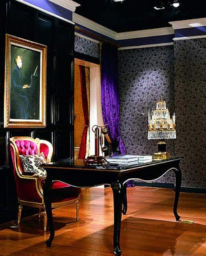 復(fù)古紋樣的壁紙大有ART DECO風(fēng),金色飾邊提升了居室的整體亮度。