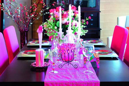 流行片段2 時(shí)尚道具 餐廳的優(yōu)雅有很多種,明亮知性款的打造法式也很簡(jiǎn)單——粉色桌旗、粉色椅套就足以定下調(diào)子。燭臺(tái)、花瓶等造型可愛的東西是營(yíng)造氛圍的高手,不用的時(shí)候單獨(dú)擺放也是優(yōu)良的飾品。