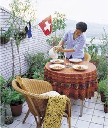 花園是要拿來(lái)“用”的,一處可坐下來(lái)休憩、用餐,甚或閱讀、曬太陽(yáng)的空間就非常重要,家中多出的桌椅,就趕緊擺出來(lái)吧!不過(guò)家具跟花器一樣,也同樣有適合戶(hù)外用的材質(zhì),像是塑料、鋁、鑄鐵、防腐木等。許多戶(hù)外家具如搖椅、躺椅,還有別忘了遮陽(yáng)傘,都獨(dú)具悠閑感,讓頂樓就是日光浴場(chǎng)!
