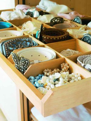 你有沒有為放置自己各種各樣的皮帶和好久不用的小飾品苦惱過?那就試試這種衣櫥里的“魔術(shù)抽屜”吧。又大又淺的抽屜內(nèi)被分隔出許多小空間,正好可以容納卷起來的皮帶和各種小玩意。當(dāng)抽屜被推進(jìn)衣櫥,誰也想不到那個(gè)小小的空間內(nèi)竟然還藏著那么多“寶貝”。