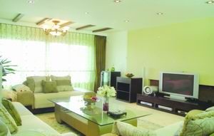 客廳 本案的設(shè)計(jì)使整個(gè)空間更加連貫、開(kāi)闊??蛷d的天花板采用散點(diǎn)光源設(shè)計(jì),使燈光明亮而柔和。深色的胡桃木沙發(fā)背墻,配上現(xiàn)代感十足的電視音響,名貴而不張揚(yáng),極好地襯托出了整體風(fēng)格的沉靜與素雅。門(mén)廳作為客廳與餐廳的過(guò)渡空間,承接了客廳的厚重與餐廳的精致,精巧的配飾與裝飾畫(huà),在燈光的映射下十分生動(dòng)。