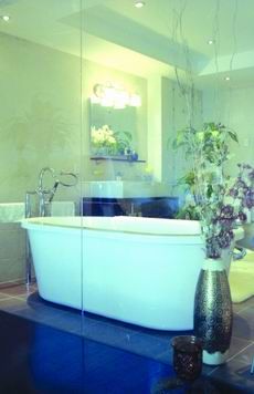 主衛(wèi) 與臥室是通透的,這種設(shè)計(jì)既增加了衛(wèi)生間的采光,也延伸出許多浪漫的情愫:米黃的墻紙?jiān)跓艄獾挠痴障?,泛出一種令人愉快的色調(diào),潔凈氣息停留在白色的潔具上、生氣勃勃的植物上、圓形浴缸上,給人徹底放松、舒適的感覺(jué)。