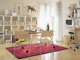 書房整體看起來很簡潔,整體以白色為主。靠壁的方型書柜既實用又漂亮。紅色的地毯給書房增添了亮點在書架上擺放了同色系的花,呼應(yīng)的剛剛好。椅子采用簡單的設(shè)計,看起來很時尚也很漂亮最主要的是顏色整體很搭。窗紗的感覺又很浪漫。整體感覺不錯,設(shè)計簡單實用,如果再有一把靠椅就更好了!